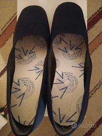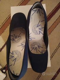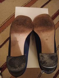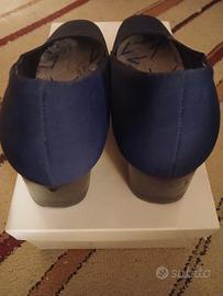 scarpe da donna in stoffa di un bel punto di blu, tacco largo altezza c.ca6cm, molto comode,punta larga, made in Italy, misura 38, ben tenute, con soletta interna come da foto, solo poste o brt