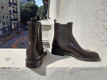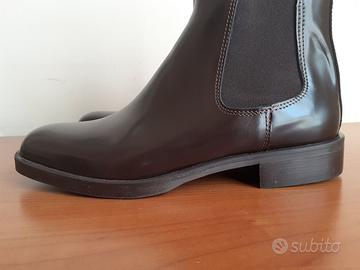 Scarpe chiuse donna modello a stivaletto in cuoio color testa di moro tacco basso, mai indossati. Tg 36. Ritiro su Milano