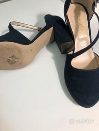 Bellissime scarpe in decolte’ tutte in vellutino,colore blu,numero 37,tacco alto con misura cm 8,usate solo per una cerimonia poi deposte,visibili per consegna a mano presso capodichino Napoli 3927802511