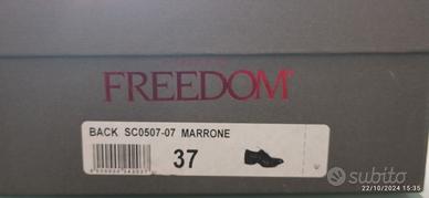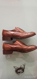 Scarpa tipo inglese in pelle marrone, con lacci e la possibilità di non usarli grazie ad una fascia elastica interna, n°37, usate poco, suola e tacco in gomma