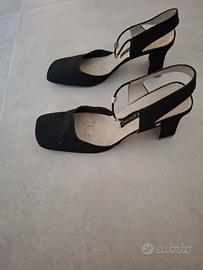 Scarpe donna in tessuto nero, eleganti con tacco, dietro aperto. T.39 marca Gastone Lucioli