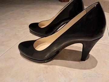 Scarpe Décolleté da donna in vernice nera punta tonda numero 39 con plateau tacco di 9 cm