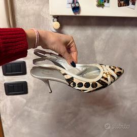 Usate ma tenute benissimo, tacco cambiato da poco. Vero cuoio, Made in italy. Super eleganti Super comode. La suola è leggermente rovinata ma non si accorge nemmeno. Tacco 6