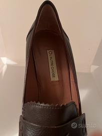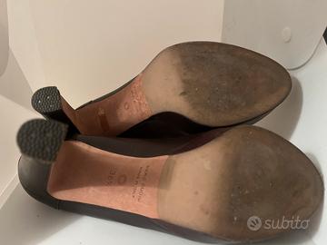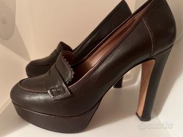 Scarpe da donna , in pelle , colore marrone scuro , usate pochissime volte . È segnato n 38 1/2 ma calza 38 .