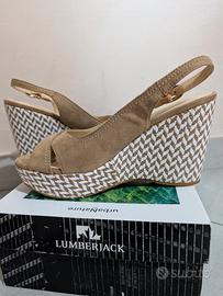 sandalo Lumberjack donna 38 tacco 10 cm plateau 3 cm pelle scamosciata beige. usata pochissimo pari al nuovo