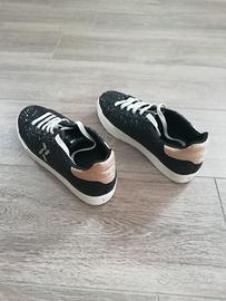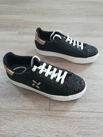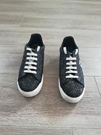 Scarpe da donna n. 39 di colore nero glitterato con cordoni bianchi. Marca Lolwey. Usate pochissimo.