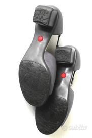 Altezza tacco: 4 cm. Sottopiede interno foderato in pelle. Suolo e tacco in gomma.
