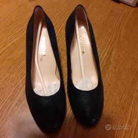 scarpe donna melluso, n.38 in pelle e suola vero cuoio, blu notte, tacco 7 cm. nuove ancora incartate con pellicola sulla suola, prezzo originale 119.00 €,