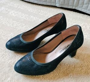 Vendo scarpe donna Melluso. Pelle scamosciata colore blu. Con fibbia anteriore removibile. Numero 34. Altezza tacco 5cm. Ottimo stato come da foto.