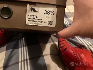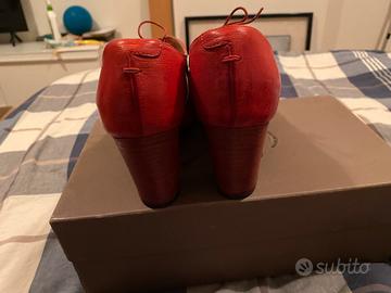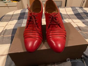 Scapre donna midello francesina con tacco di colore rosso,pelle anticata.
