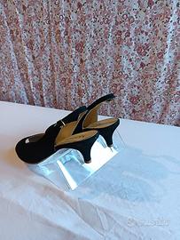 Scarpe donna modello chanel slingback pelle scamosciata nero, tacco spillo ricoperto 5 cm, marca Luodì, indossate 1 volta, scatola originale