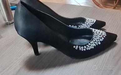 Eleganti scarpe da donna con strass con tocco . Perfette per occasioni speciali. - Decorazione frontale con strass. - Design a punta.