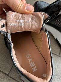 Scarpe da donna in vera pelle della keys, numero 38, colore nero con suola bianca e zip laterale.