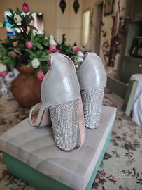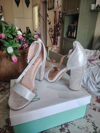 Scarpe donna numero 36 argento con tacco brillantinato eleganti per occasioni speciali comode vendo per inutilizzo usate 2 volte pari al nuovo