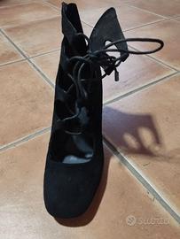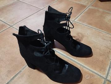 Scarpe donna nere con lacci e zip tacco 9 tg 39