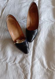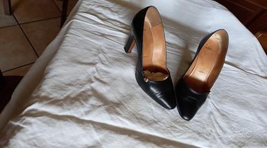 Scarpe nere eleganti in pelle n. 39. Tacco cm. 9,5. Suola in vero cuoio.