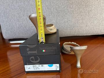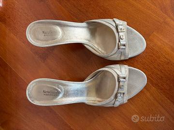 Vendo scarpe da donna Nero Giardini n.39, color platino/oro. Usate pochissimo. Ottime condizioni. Con imballo originale. Non spedisco.