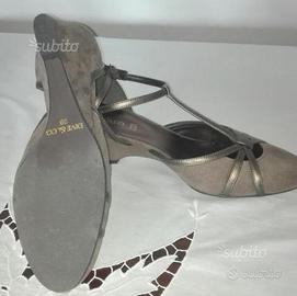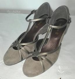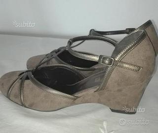 Vendo scarpe in morbida pelle scamosciata, color beige, con fibbia di chiusura e listini sul piede in pelle bronzo. Misura 39. Usate raramente. Eleganti e comode.