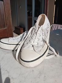 Scarpe sneakers pizzo bianco Pimkie e/o Sandali scamosciati beige cinturino, tacchetto quadrato 6 cm. Costo a paio.