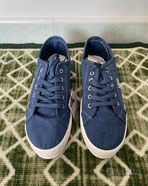 Scarpe basse da donna con suola platform. - Tomaia in tessuto blu. - Dettagli a contrasto. - Chiusura con lacci.