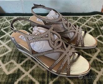 Eleganti sandali da donna con un design scintillante. Perfetti per aggiungere un tocco di luce al tuo outfit. - Dettagli con strass. - Tomaia in materiale sintetico. - Suola con zeppa.