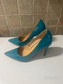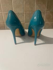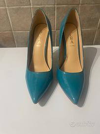 Vendo per inutilizzo scarpe da donna verde ottanio lucido numero 39 tacco 11. Scarpe usate una sola volta.