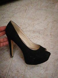 Scarpe donna tacco 12, nere vellutate, aperte in punta. Tg 39
