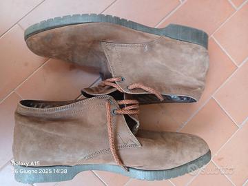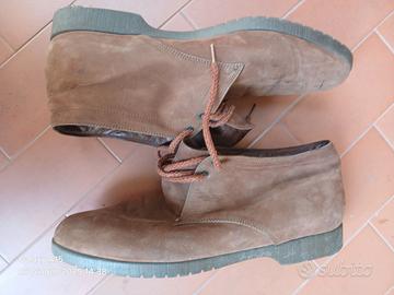 Scarpe invernali sportive tipo polacchine imbottite e scamosciate marroni con lacci