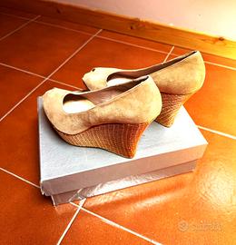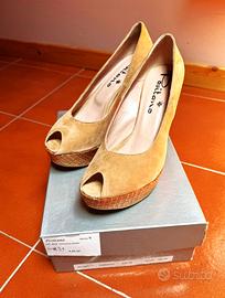 Vendo eleganti scarpe da donna marca Positano, misura 39, provenienti da chiusura attività. Modello raffinato in camoscio color malto con plateau intrecciato, perfetto per un look estivo chic e confortevole. Articolo nuovo: la scatola è stata aperta esclusivamente per esposizione in negozio, mai indossate. Prezzo molto interessante. Disponibili subito.