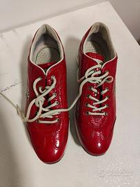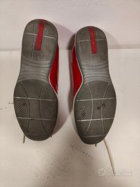 Vendo, come da foto, scarpe usate da donna Prada in pelle rossa, n. 39,5.