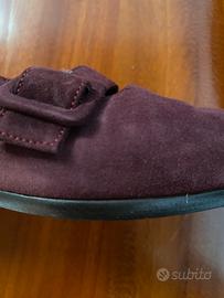 Scarpe basse scamosciate, taglia 35 1/2 ma vestono almeno un numero in più. Usate ma in buone condizioni.