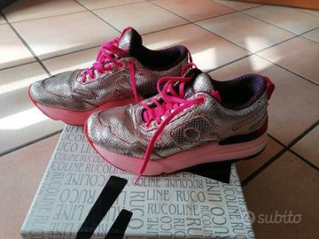 Argento e rosa. Scarpe da ragazza e o donna nr 37. Rucoline. Stringate. Usate ma la qualità è talmente elevata che faranno ancora parecchi km.