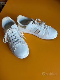 - Scarpe bianche con inserti colore oro/argento, nr. 39.- Leggermente rovinate internamente al tallone (come da foto) - € 15.-