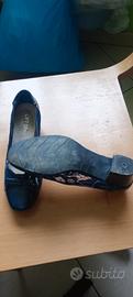scarpe donna,colore ricamo blu, numero 37,usate due volte per due cerimonie,tacco basso
