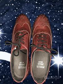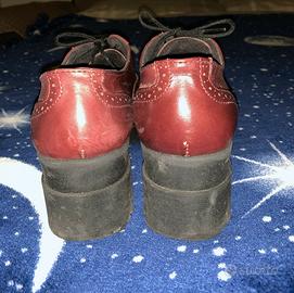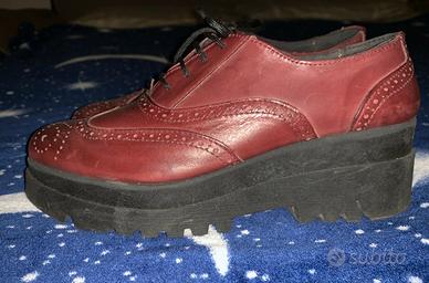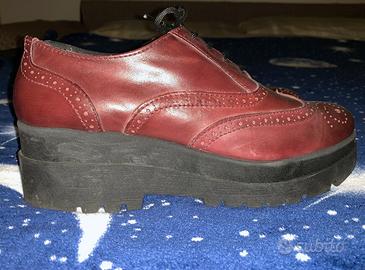 Vendo scarpa da donna in pelle colore rosso bordeaux con plateau nero. Numero 40. Indossata una sola volta. Usata, ma in ottime condizioni, non presenta segni di usura, vendo senza confezione originale.