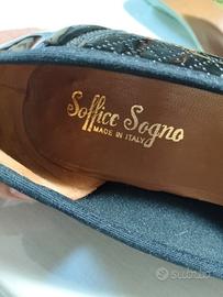 Scarpa donna comoda soffice sogno, nero lucido con fiocco con soletta estraibile tacco quadrato alto cm 4 .