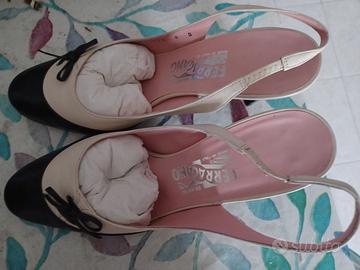 Tacco 7 cm, misura 38, colore: magnolia/nero MAI INDOSSATE, PARI AL NUOVO
