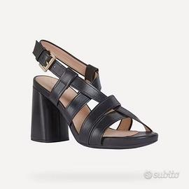 Modello: GENZIANA HIGH Donna sandali neri SS21, tacco rivestito in pelle altezza 9 cm, suola in gomma, chiusura fibbia oro, suola interna in pelle, comodo plateaux.