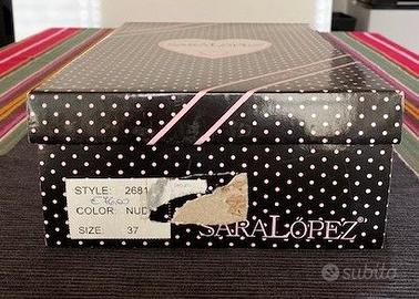 Vendo scarpe da donna marca Sara Lopez n. 37. Sono in tessuto nude rivestite di merletto nero e il puntale in pietruzze nere. Come si può vedere dalle foto sono state usate molto poco.