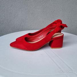 Slingback donna in camoscio sintetico con punta affusolata e cinturino posteriore aperto che si chiude con un fiocco morbido alla caviglia.