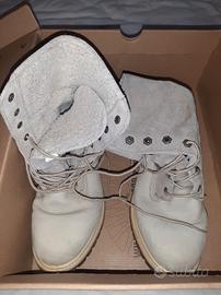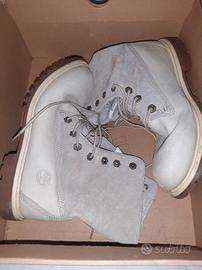 Scarponcini Timberland originali donna numero 39 originali pagati 190 euro..in ottimo stato il tessuto e la suola poco usata colore beige/panna