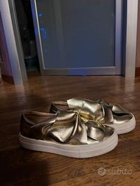 Scarpe donna senza lacci con bara bianca e fiocco oro.