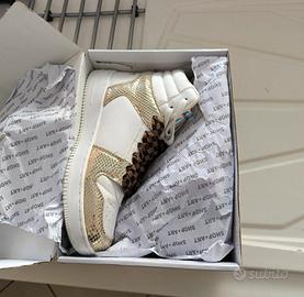 vendo scarpe donna shop art in ottime condizioni numero 38 colore bianco e dorato con doppi lacci,con scatola originale vendo per inutilizzo