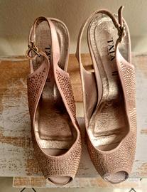 Scarpe donna slingback open toe oro rosa e strass