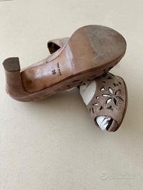 Scarpe donna spuntate, peep toe, aperte davanti, camoscio color betulla, beige, tortora, tg 38 Progetto Glam, il tacco è stato risuolato.