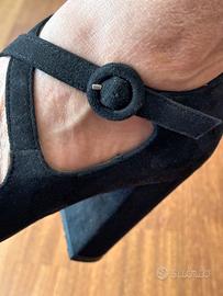 Scarpe in vera pelle marca Conbipel scamosciate nere. Indossate pochissime volte, in ottimo stato. Tacco 10 cm. Cinturino regolabile. Nr. 37