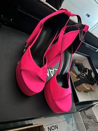 Vendo sandali con tacco alto in colore fucsia neon, super vistosi e perfetti per outfit estivi, serate o eventi. Le scarpe sono state usate pochissimo, condizioni quasi pari al nuovo. Il design con plateau e tacco largo le rende più comode e stabili rispetto ai tacchi classici. ✔ Colore acceso effetto wow 🔥 ✔ Tacco largo + plateau (più comfort) ✔ Cinturino alla caviglia ✔ Ideali per estate, feste, discoteca 🔎 Condizioni: Pari al nuovo, come da foto 📦 Spedizione disponibile / consegna a mano 🧵 Materiali Tomaia: materiale sintetico (tipo simil-neoprene) Suola: gomma Interno: sintetico €25