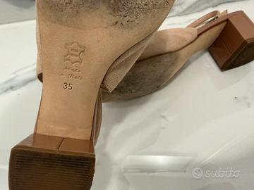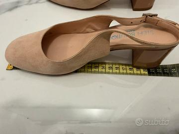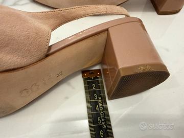 Scarpe donna in vera pelle scamosciata modello Chanel tg.35 (tacco largo 3cm), colore rosa cipria, tg.35 Made in Italy, comprate in boutique a Rapallo. (No macchie, no difetti)