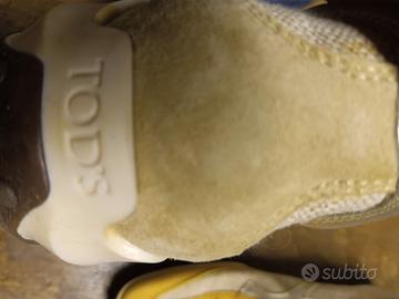 Scarpe donna Tod's in ottimo stato, tessuto e pelle, colore beige, senape e argento. Molto carine