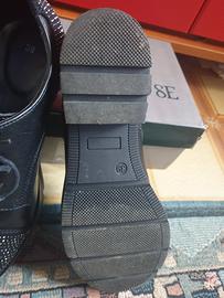 Vendo bellissime scarpe donna, messe una volta, praticamente nuove, numero 39, color nero. Scambio a Osasco o spedisco a carico del acquirente. 10€
